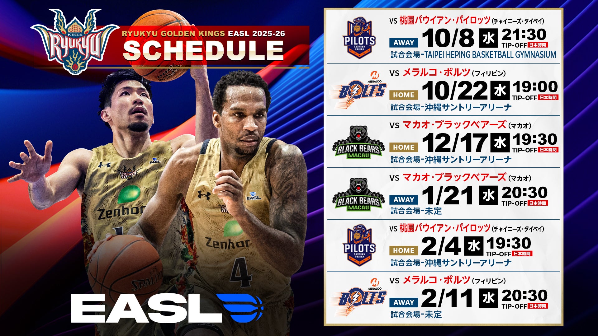 この度、東アジアスーパーリーグ(EASL)より発表がありました通り、EASL2025-26シーズンのグループステージ全36試合の試合開始時刻および開催会場が発表されました。キングスはホームゲームを3試合戦い、ホーム開幕戦は10月22日(水)19:00より、フィリピンの強豪メラルコ・ボルツを沖縄サントリーアリーナに迎えます。