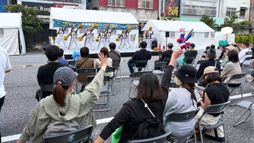 ステージパフォーマンスでは、試合会場で披露しているパフォーマンスに加え、チアダンス特有の動きを取り入れた振り付けを観客の方々と一緒に楽しみ、大いに盛り上がりました。