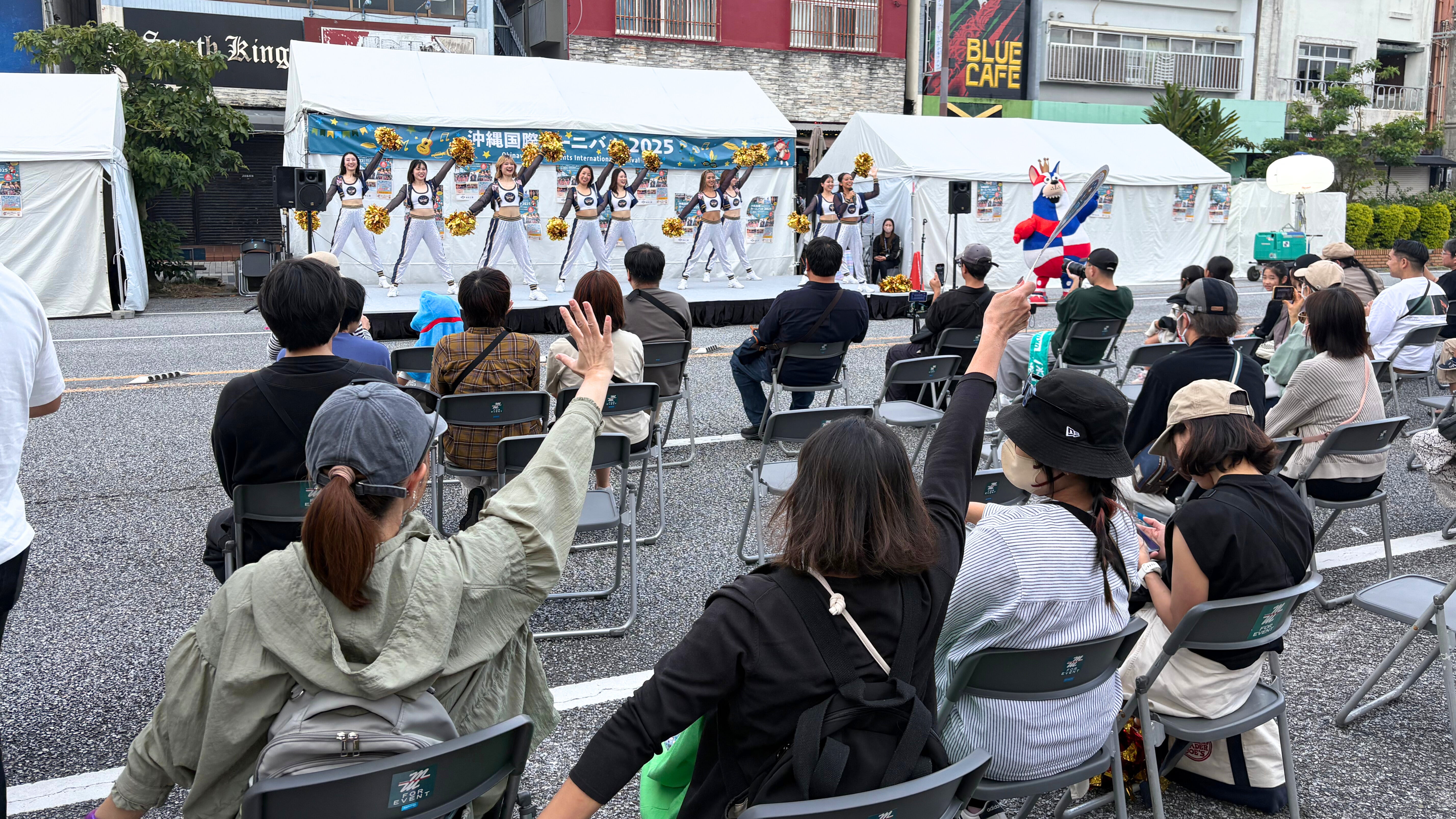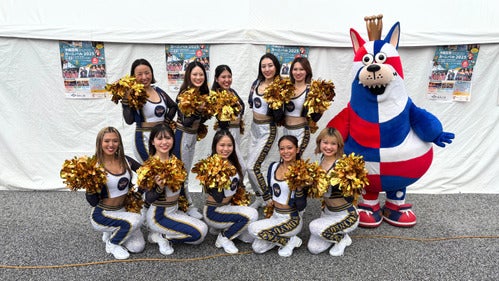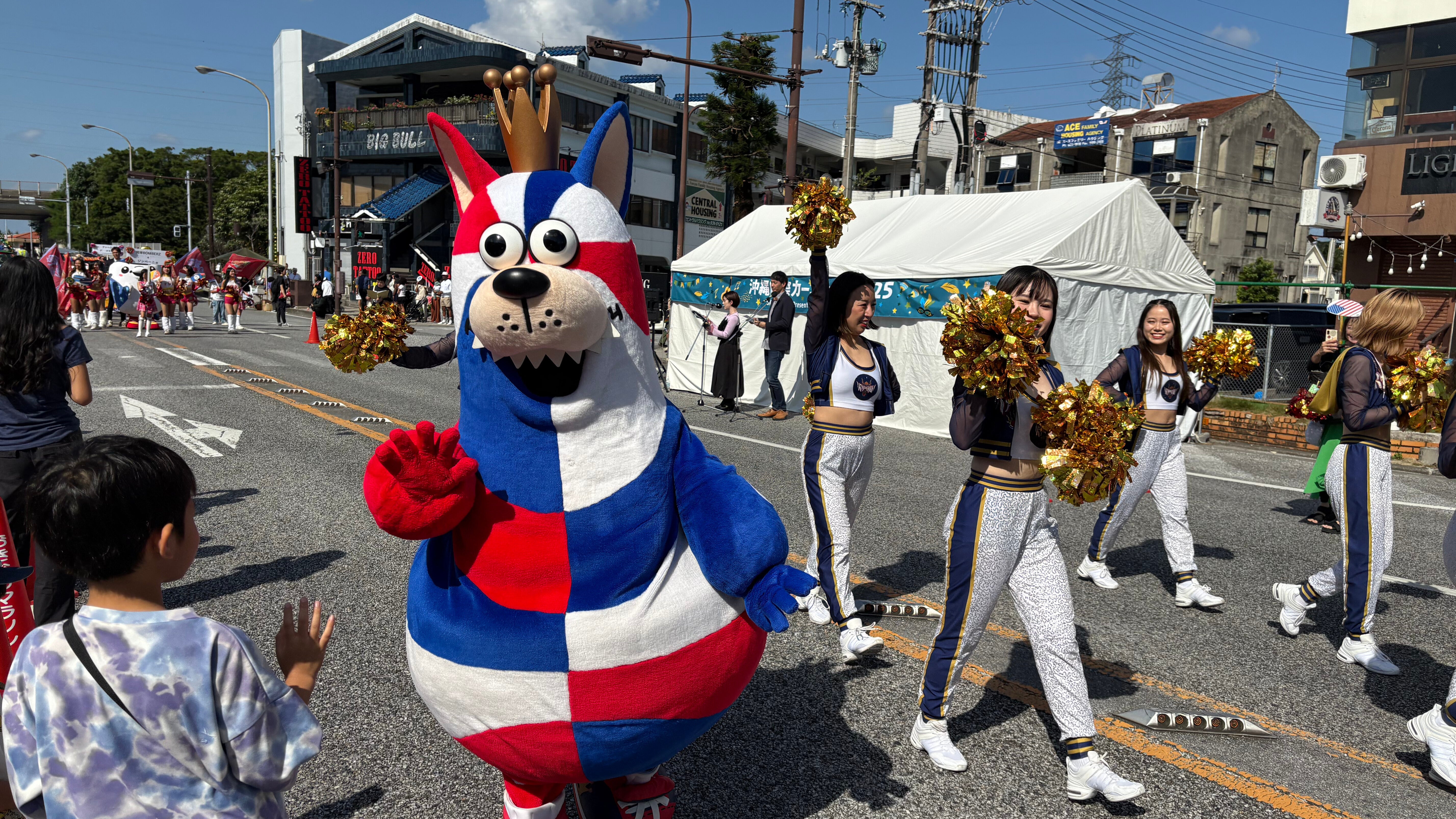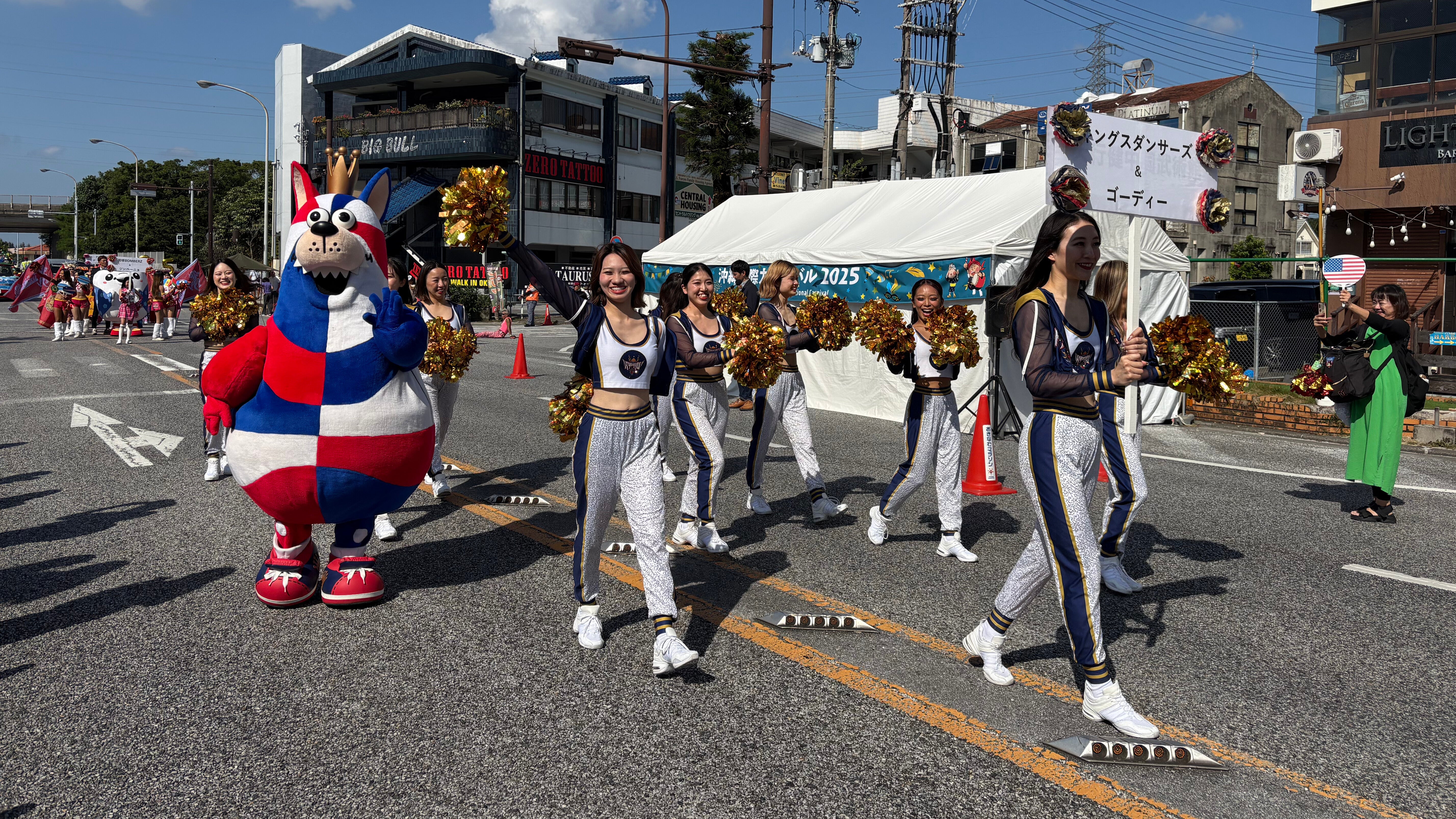 色とりどりの衣装をまとった一般団体に加え、沖縄サンバカーニバルやステージ出演者がそれぞれチームの魅力をPRしながら一緒に歩く、国際色豊かなカーニバルパレードでは、ゴーディーとキングスダンサーズがハイタッチや写真撮影を通じて来場者と交流しました。沿道からは「ゴーディー!」と多くの声援が寄せられ、会場は賑やかな雰囲気に包まれました。