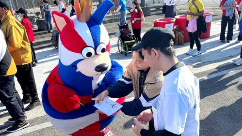 開会式では、入場してくるアスリートの皆さまを花道で迎え、競技に挑む皆さまへゴーディーがエールを送りました。また、「キングス頑張って!応援してるよ!」、「ゴーディーに会えて嬉しい」といった声も寄せられ、ゴーディーはアスリートたちへサインを書いたり、写真を撮ったりして、交流を深めました。