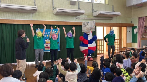 お誕生日会では「この先生は誰だクイズ」や「ゴーディークイズ」を行いました。ゴーディーが顔を隠して登場すると、すぐに「ゴーディーだ!」と気づく子どもたちの元気な声が響き渡り、大盛り上がりのひとときとなりました。