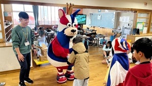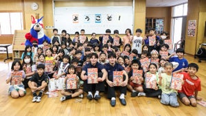 ゴーディーの訪問に驚く様子も見られましたが、ドリルや、付録の「岸本隆一選手のサイン入りポスター」や「ゴーディーのクラフト貯金箱」を嬉しそうに受け取っていました。また、子どもたちからは、「このドリルを使って、勉強頑張ります。」「沖縄市の子どもたちのために準備してくれてありがとうございます。」といった声も寄せられました。教職員からも「しばらくはこの話題で学校が盛り上がりそうです。」「春休みの良い宿題になります。」といったお言葉をいただき、子どもたちだけでなく、教職員の皆さまにも喜んでいただく機会となりました。