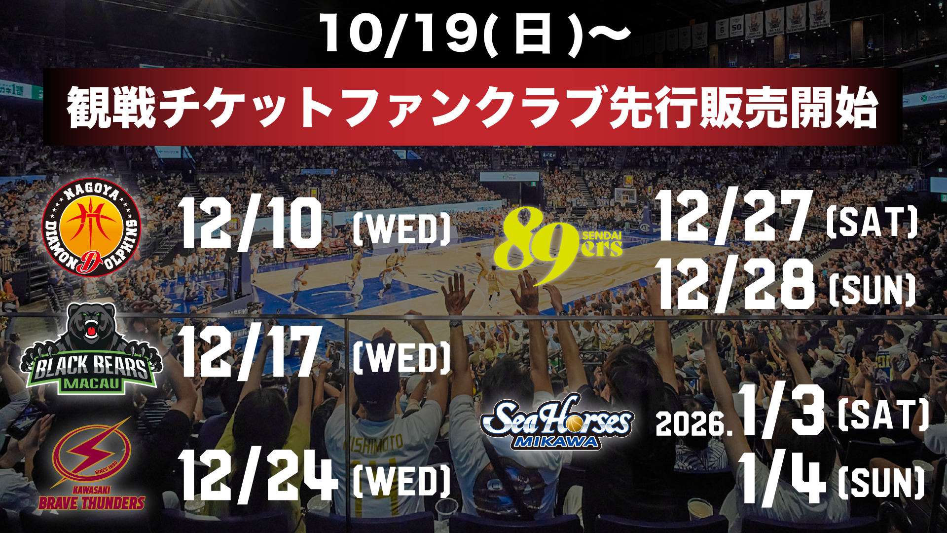10月19日(日)より12月の名古屋D戦から年明けの三河戦までの 7ゲームのチケット販売開始