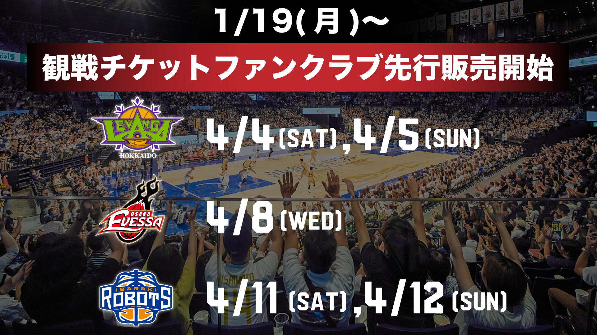 1/19(月)より4月の北海道・大阪・茨城の 5ゲームのチケット販売開始!