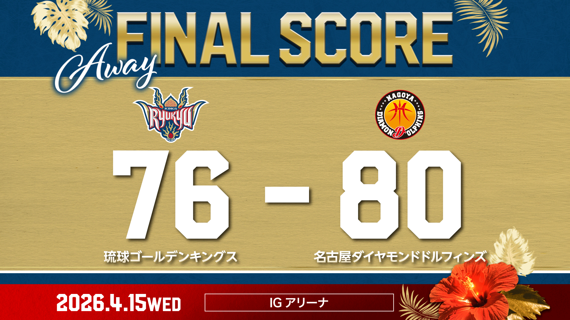 【結果】強豪・名古屋Dとの接戦の末、惜敗[4/15(水)vs名古屋ダイヤモンドドルフィンズ]