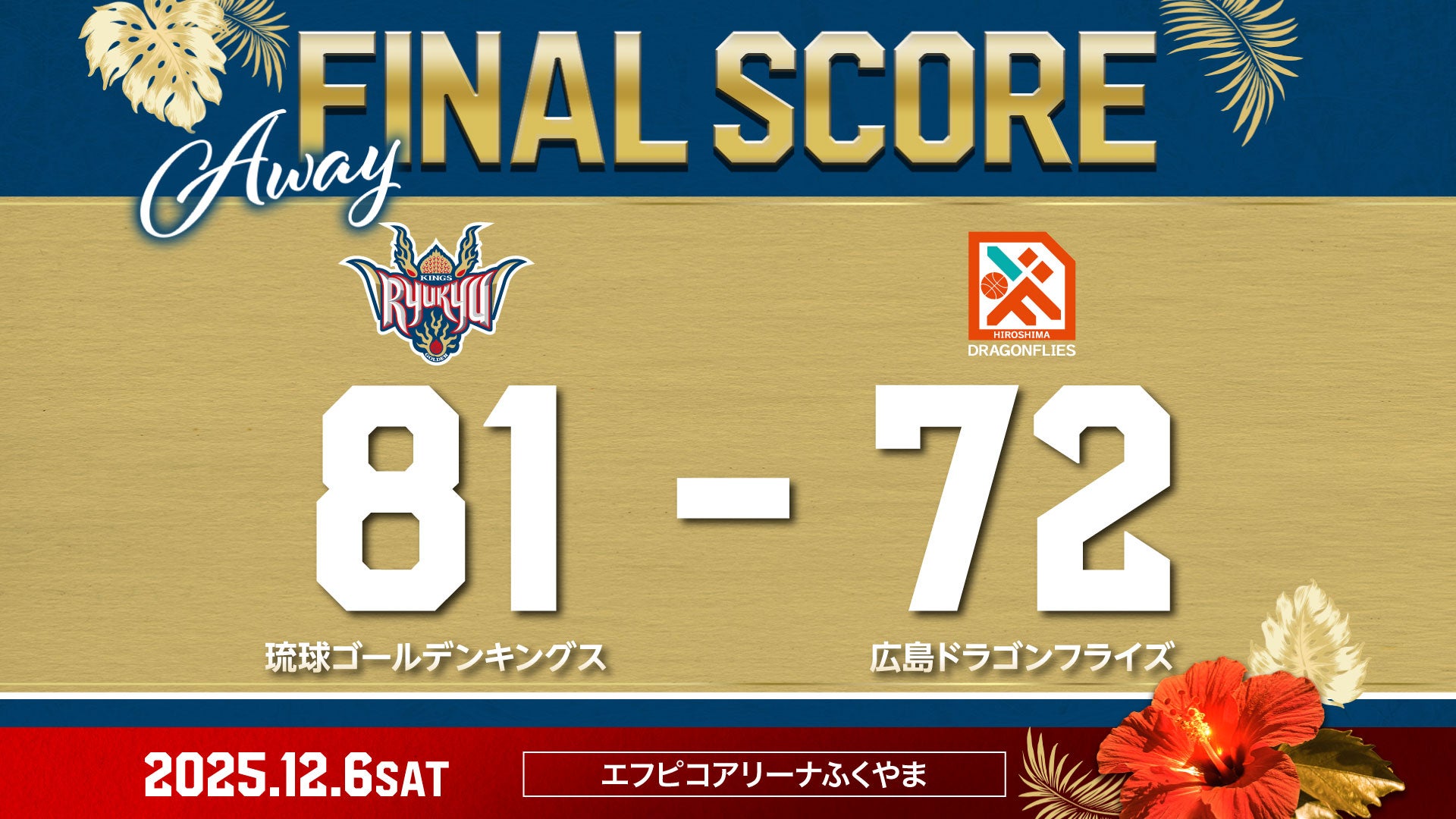【結果】西地区のライバル広島に勝利![12/6(土)vs広島ドラゴンフライズ]