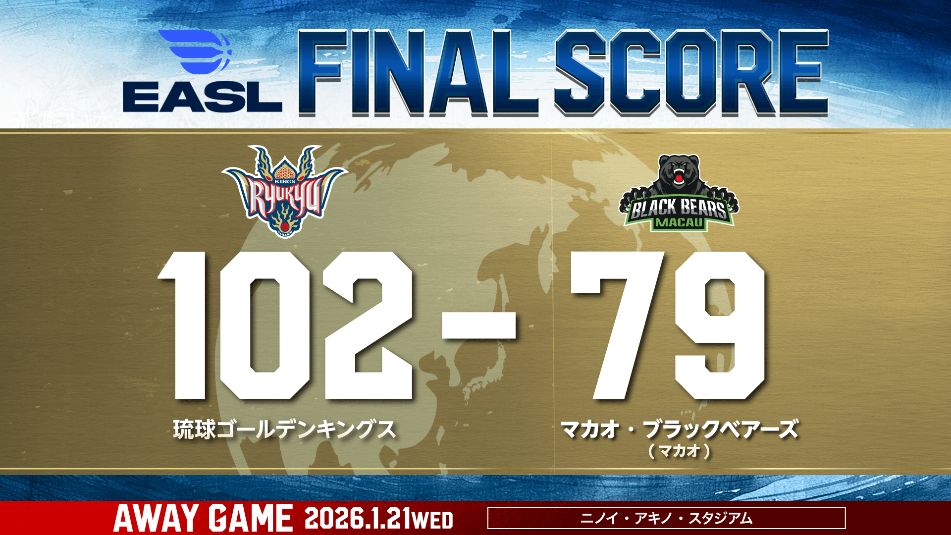 【結果】ゲームレポート [1/21(水) EASL vsマカオ・ブラックベアーズ戦]