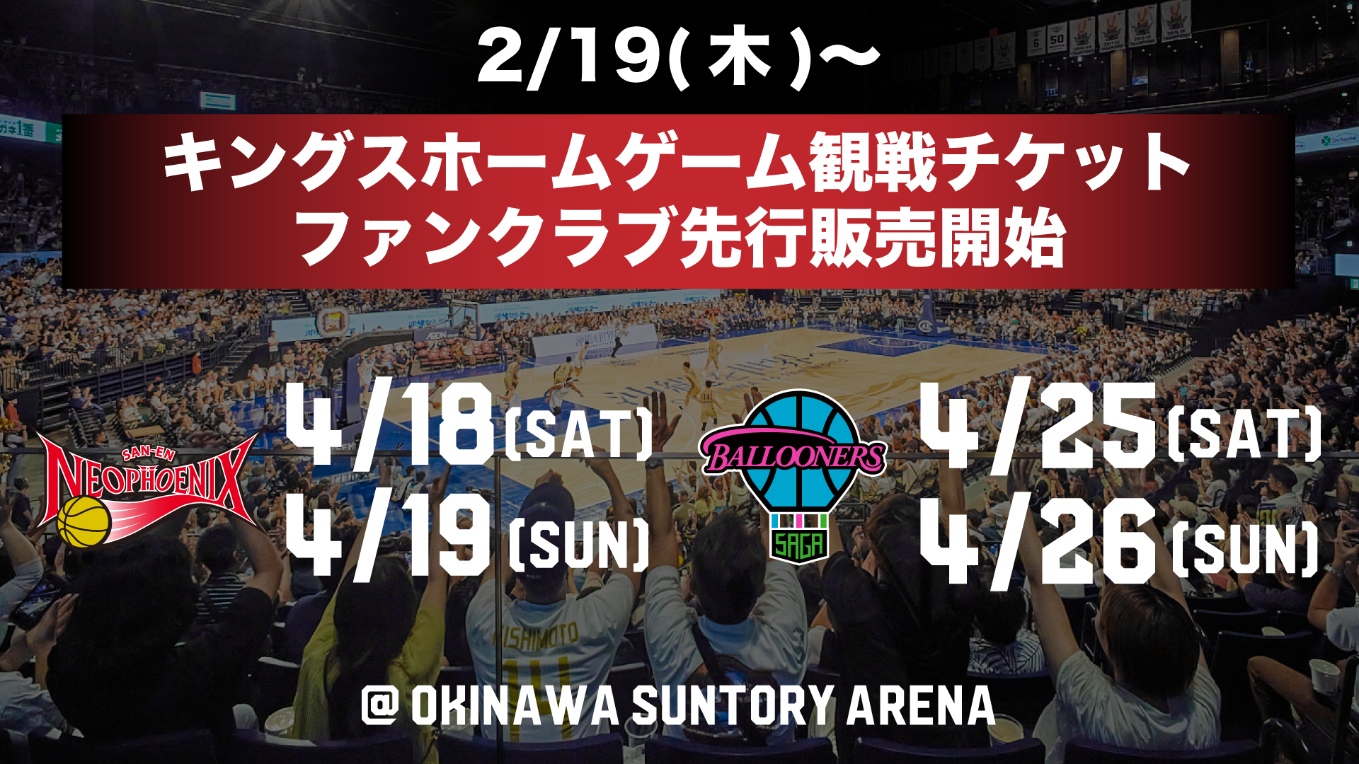 2/19(木)より4月の三遠・佐賀の4ゲームのチケット販売開始!
