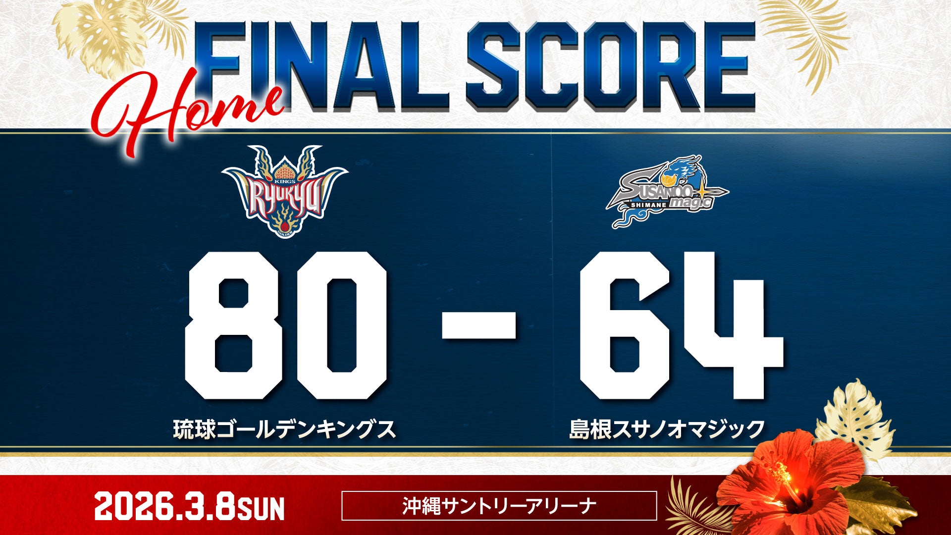【結果】集中力高く戦い抜き、西地区対決を制す![3/8(日)vs島根スサノオマジック]