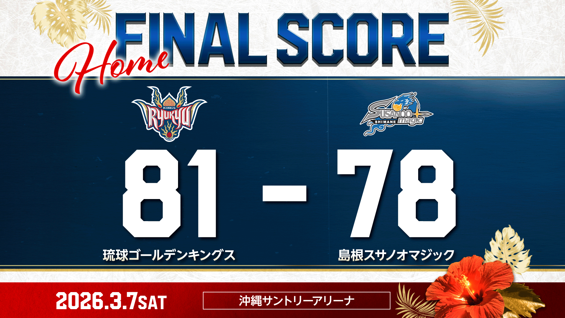 【結果】島根の猛追を振り切り、バイウィーク明け初戦を勝ち切る!【3/7(土)vs島根スサノオマジック】