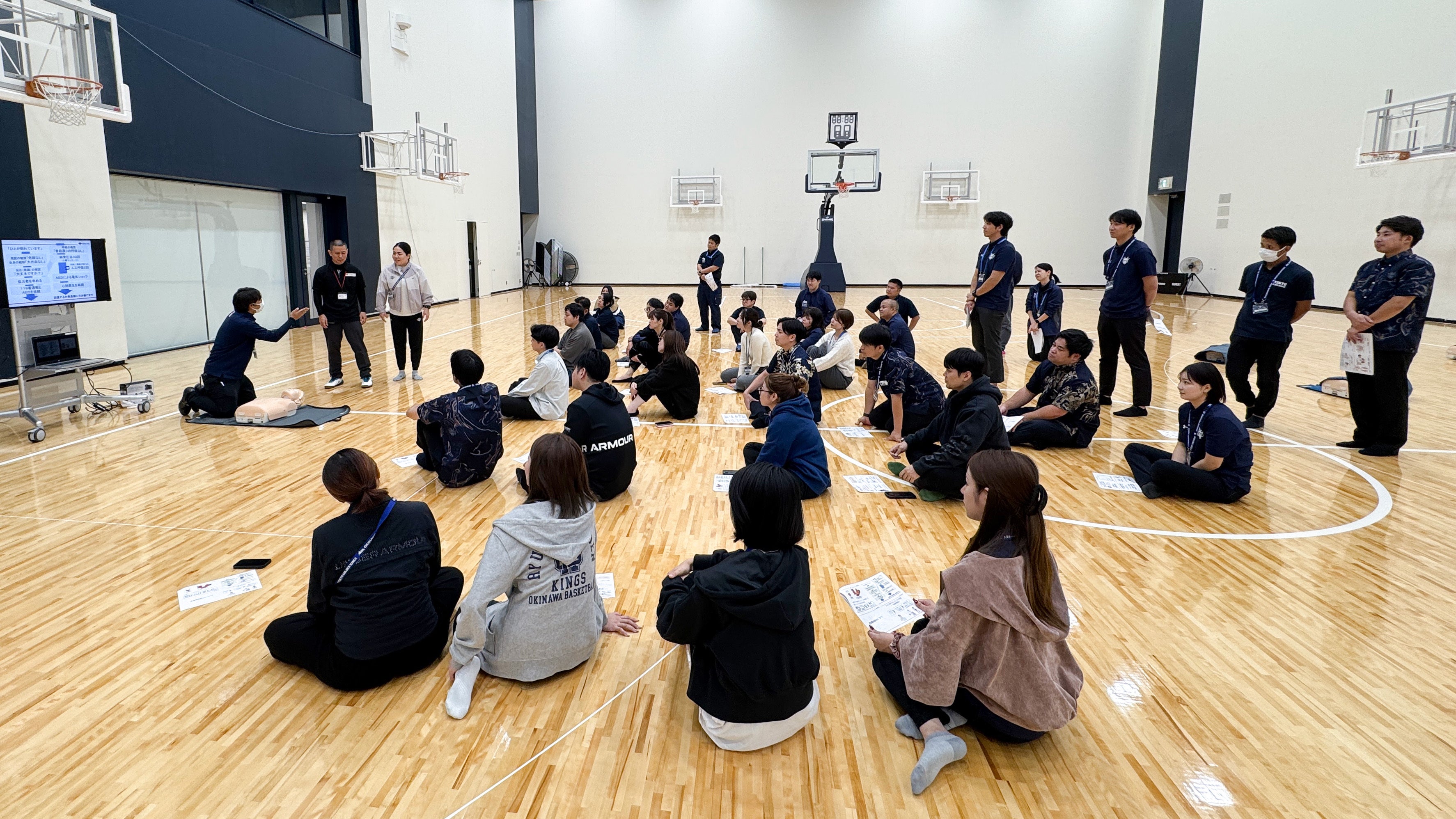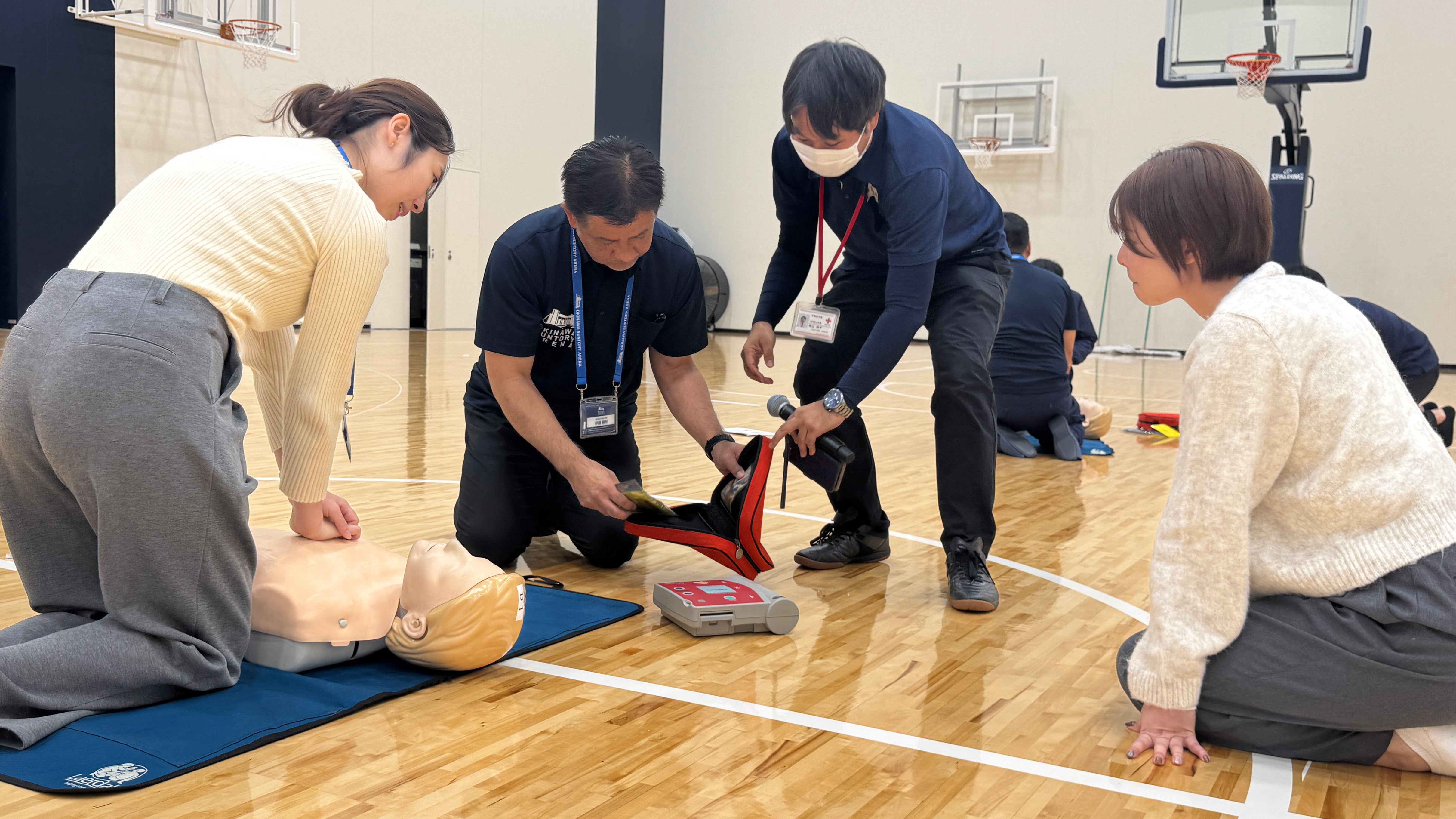 安心して来場いただくために。キングス・沖縄アリーナ社合同で救急法講習および避難訓練を実施