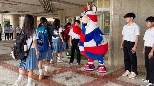 10月22日(水)に訪問した本部町の上本部学園は、これまで実施したあいさつ運動で最北端の訪問先となりました。活動地域が広がり、より多くの子どもたちと触れ合う貴重な機会となりました。また、児童会や生徒会の皆さんのあいさつ運動に参加し、ゴーディーとハイタッチをして教室に向かう子や、ゴーディーを撮影しあいさつ運動がさながら撮影会のようになる学校もあり、どの学校も笑顔あふれる楽しい時間となりました。