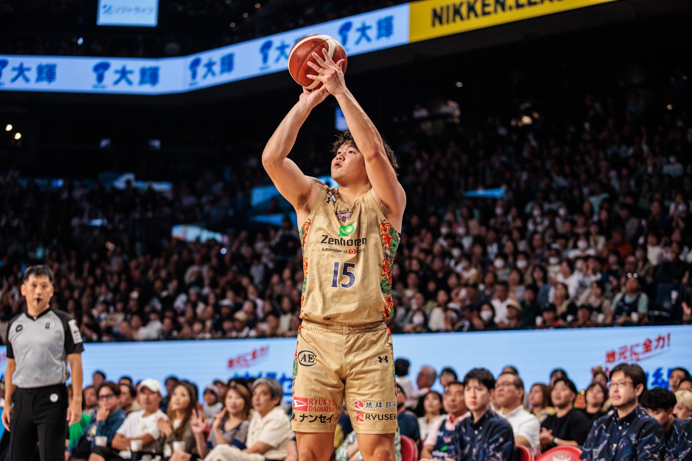 チーム全体が連動し粘り強く戦うスタイルが浸透しつつあり、前節の茨城戦では2連勝と勢いに乗っています。特にGAME1では、キャプテンの#13 前田悟選手が4クォーター終了間際に同点の3Pシュートを沈め、オーバータイムの末に競り勝つなど、勝負強さを見せました。平均リバウンド数12.8本でリーグ1位を誇る#10 チャールズ・ジャクソン選手がインサイドを支配し、千葉Jより期限付き移籍で加わった#12 小川麻斗選手ら若手もチームに活力を与えています。また、キングスでのプレー経験がある#51 古川孝敏選手や#16 渡辺竜之佑選手(沖縄県出身)もプレーしています。