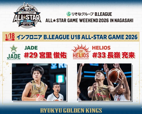 また、1月18日(日)に行われる「インフロニア B.LEAGUE U18 ALL-STAR GAME 2026」には、キングスU18から#7 宮里俊佑選手、#12 長嶺充来選手が選ばれました。