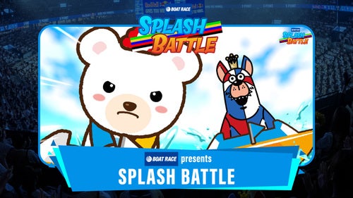 BOAT RACE presents「SPLASH BATTLE」は、メガビジョン上で展開される、ゴーディーとBOAT RACEのマスコットキャラクター・クマホンによるボートレースの勝敗を予想する企画です。