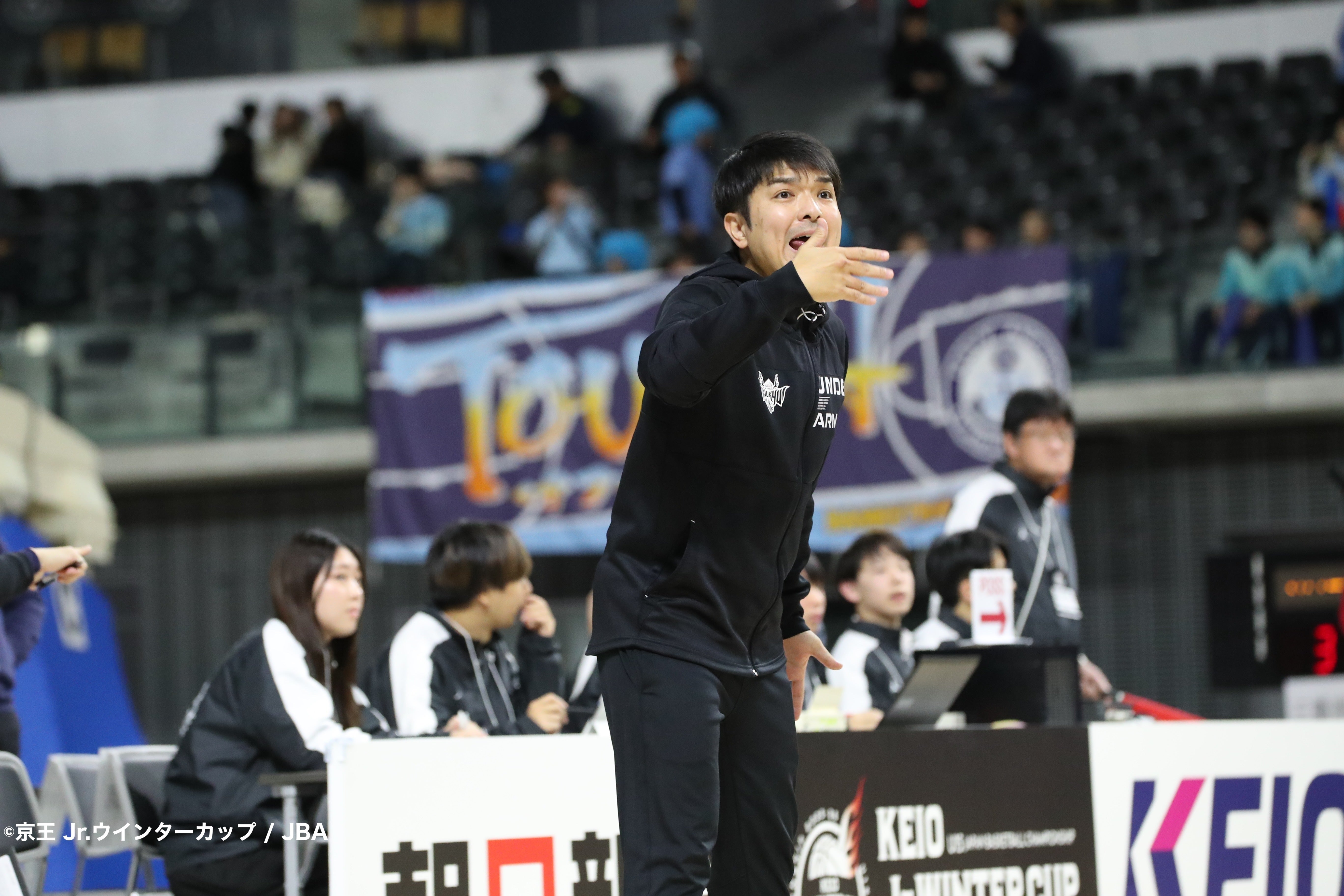 優勝候補である京都精華学園中学校に対し、「自分たちのバスケットをやり通せば勝てる」と意気込んで臨んだ一戦でした。通用する部分もあった一方で、リバウンドへの意識や、ここ一番での集中力において相手が上回っていたと感じています。自分たちの心の緩みが弱さとして出てしまい、悔しい敗戦となりました。